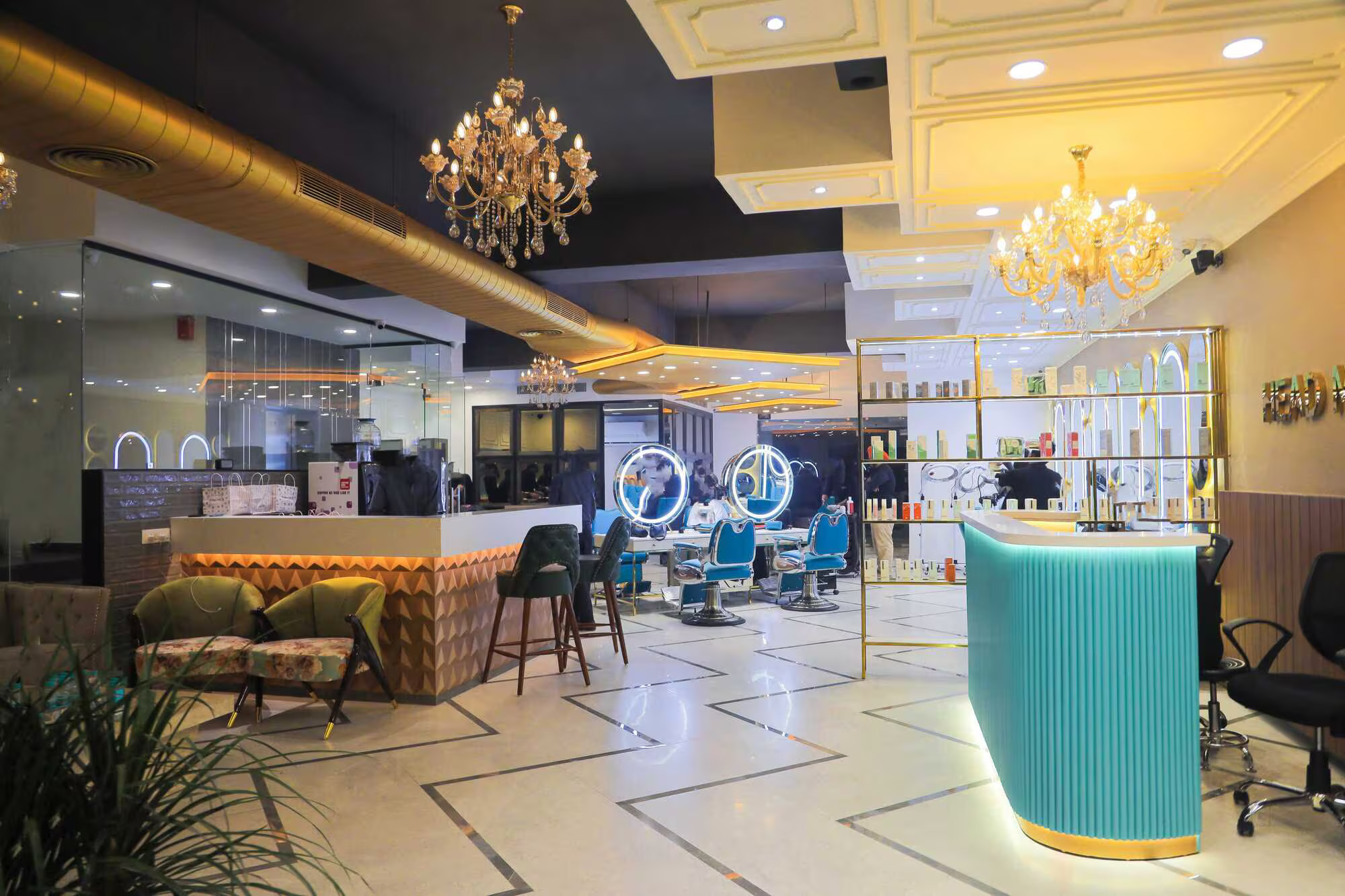 This is taking the established name of Headmasters to the next level. Since we were the original architects and did a few of the original stores taht established the identity of the brand, we were the obvious choice for the new store in the tricity. It was envisaged as a functional and stylish place in the middle of a glut of similar salon and spas. An elevator combines the three levels comprising, cutting, beauty and the academy/office areas. The ambiance is fresh and inviting. New technologies have been incorporated to enhance the overall client experience.The back end services in the basement and the terrace are integrated seamlessly into the interior fabric.